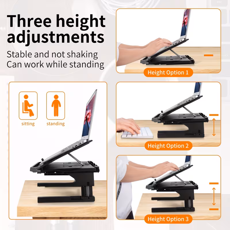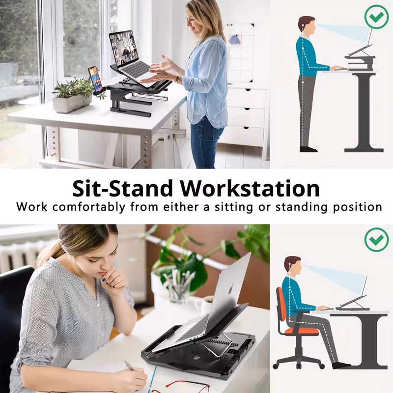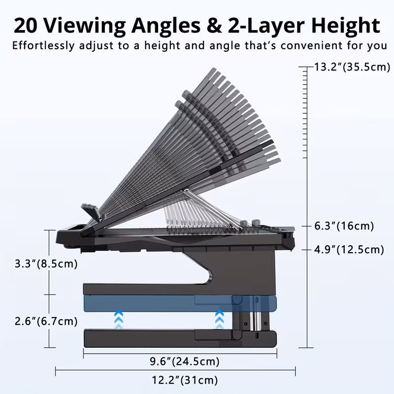 Laptop Stand, Height Adjustable 20-Angle Dual-Layer Laptop Holder, Compatible with 10-Inch – 17-Inch Laptops, Portable Notebook Vertical Stand with 360-Degree Rotating Base Storage Space and Extra Phone Holder Black